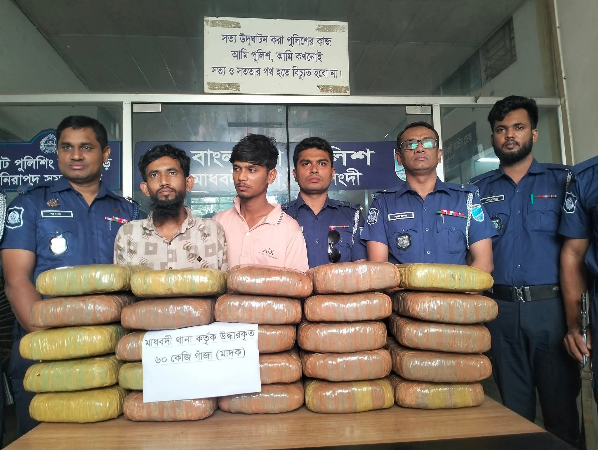 নরসিংদীর মাধবদীতে ৬০ কেজী গাঁজা সহ ২ যুবক গ্রেফতার