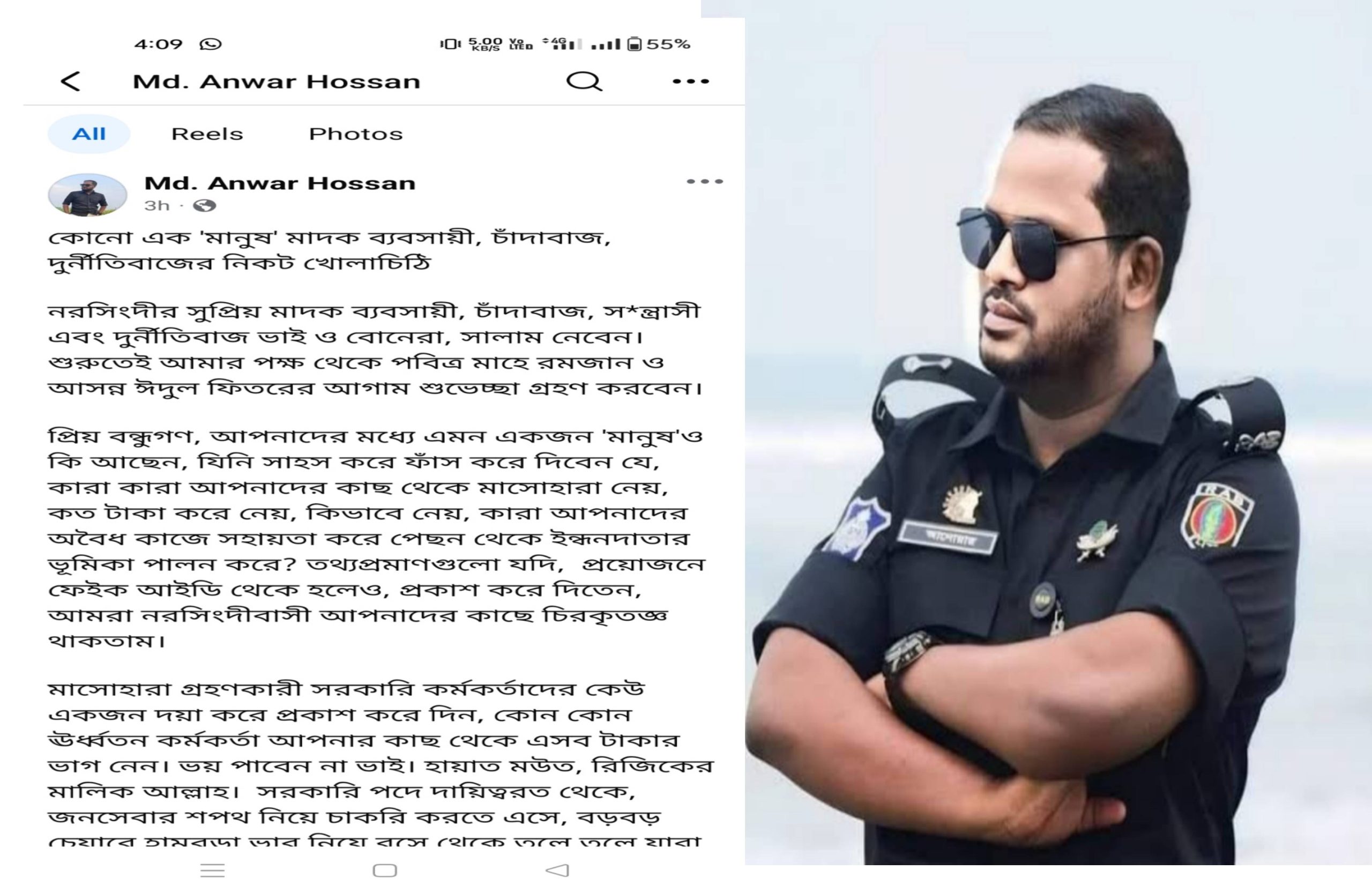 নরসিংদীতে মাদক ব্যবসায়ী, চাঁদাবাজ, সন্ত্রাসী ও দুর্নীতির সঙ্গে জড়িতদের উদ্দেশে ব্যতিক্রমধর্মী এক খোলা চিঠি দিয়েছেন নরসিংদী সদর সার্কেলের অতিরিক্ত পুলিশ সুপার শামীম আনোয়ার। সামাজিক যোগাযোগমাধ্যমে প্রকাশিত ওই খোলা চিঠিতে তিনি অবৈধ কর্মকাণ্ডের পেছনে থাকা প্রভাবশালী ব্যক্তি ও দুর্নীতিগ্রস্ত কর্মকর্তাদের মুখোশ উন্মোচনে তথ্যপ্রমাণ দেওয়ার আহ্বান জানিয়েছেন।